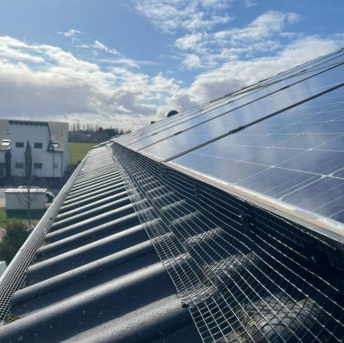 The solar panel grid prevents pigeons from sheltering at PV systems.