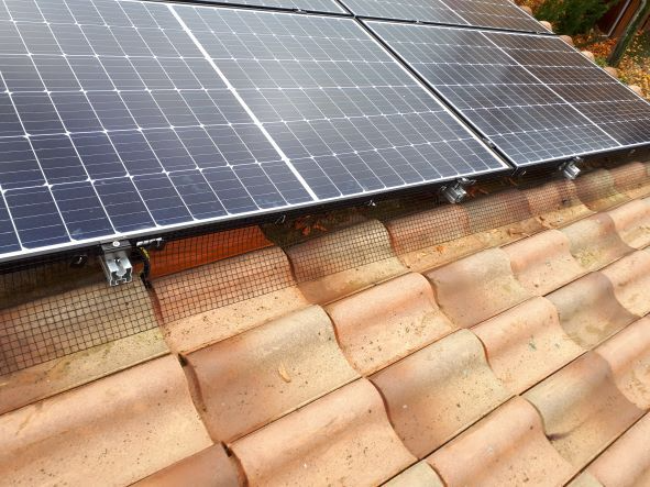 Защитная сетка из солнечных панелей предотвращает укрытие голубей возле фотоэлектрических систем.